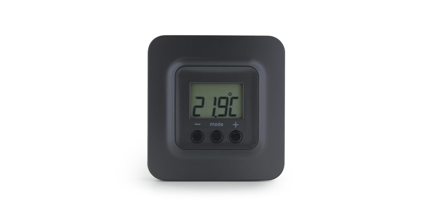 Available in a modern Matt Charcoal Grey finish. The Delta Dore Tybox 5101 Wireless Multi-Zone Thermostat is a sleek, slim, space-saving room temperature control and sensor unit for the home. Ideal for pairing with an electric heating or hot-water heating receiver, this thermostat is also suitable for the regulation of electric underfloor heating.