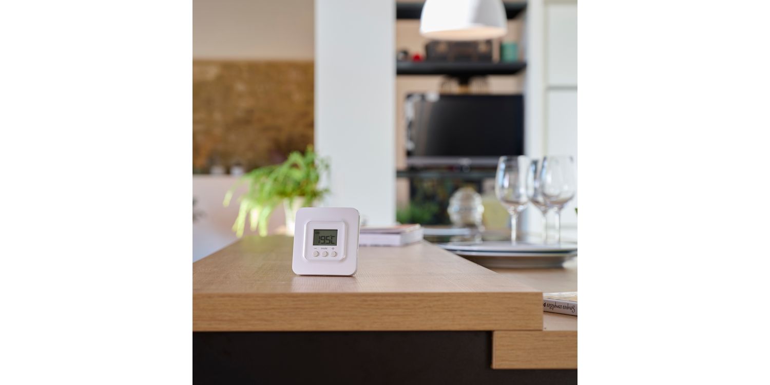 The Delta Dore Tybox 5701 FP Wireless Thermostat is an ultra-precise, feature-filled temperature control essential that's suitable for using with a 4 or 6-order pilot wire radiator. Designed to control, program and display your heating status, either locally or remotely, using the Tydom app or using voice commands with a voice assistant.