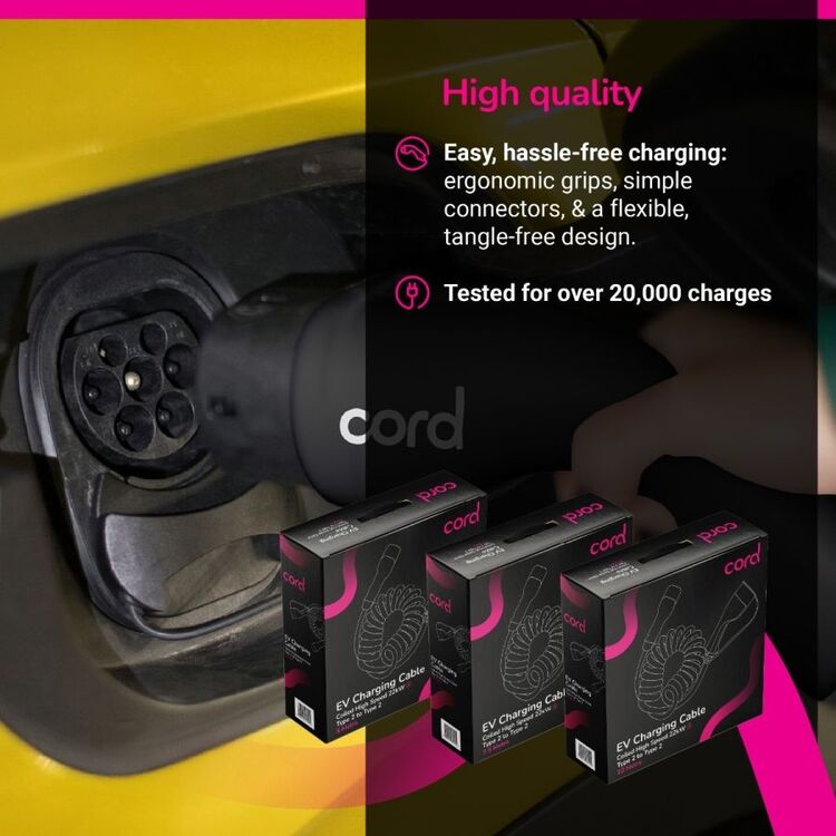 The Cord coiled 5m EV charging cable has been designed for use with any electric vehicle.