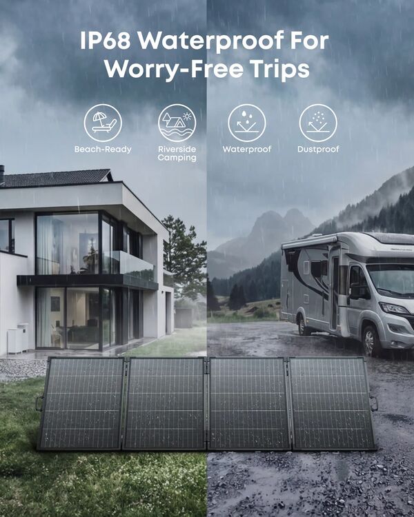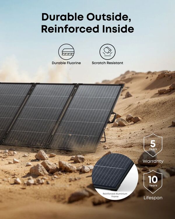 • 10-Year Lifespan, 5-Year Warranty, and IP68 Waterproof: Built to last with a reinforced aluminium frame and impact-resistant materials. Rated IP68 for water and dust resistance - your panels stay protected in rain, mud, and beyond.
