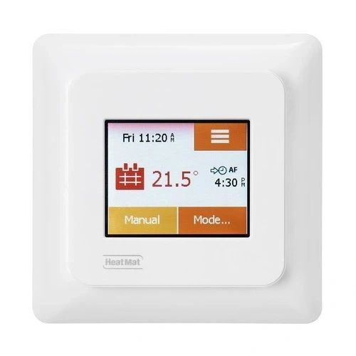 The Heat Mat NGT-2.0-STND is a sleek, fully programmable digital touchscreen thermostat designed to deliver precise control of electric underfloor heating systems. Finished in crisp white and built with user-friendly technology, this 16A thermostat combines style, efficiency, and smart scheduling for optimal home comfort.